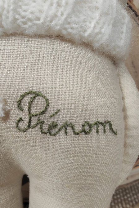 Vous pouvez commander le prénom ou l'initiale à broder en commentaire lors de votre commande : faites-moi confiance, je choisirai l'emplacement et la couleur les plus adaptés...Mais vous pouvez m'indiquer vos souhaits !